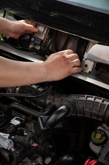 Repair and replacement procedures require disconnecting power sources‚ using the manual for guidance‚ and employing the correct tools. Follow detailed steps for safe and effective part replacement.